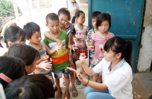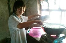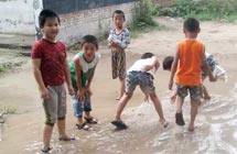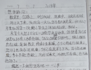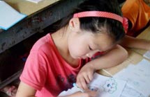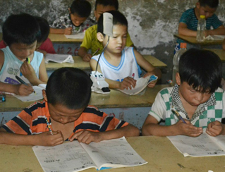 鄉(xiāng)村小學(xué),沒有體育器材,沒有娛樂設(shè)施,孩子們只能選擇自娛自樂。有次,志愿者們看到孩子們用一根細(xì)樹棍,一塊石柱,就玩起了翹翹板。每到夜晚,志愿者的住處就擠滿了學(xué)生,大家或做游戲,或一起用筆記本電腦看哆啦A夢(mèng),從孩子們看動(dòng)畫片的那份專注,志愿者們看得出來,孩子們很少能看到這種動(dòng)畫片。天陰教室昏暗,加上學(xué)校經(jīng)常斷電,孩子們不得不在陰暗的環(huán)境中上課。老師拿來自己的小臺(tái)燈給在角落的孩子照明,即使在這樣的情況下,孩子們依然學(xué)習(xí)很認(rèn)真。申倩老師應(yīng)該是最受歡迎的啦,她多次收到孩子們的“示愛書信”,那些小紙條上往往寫著“音樂老師你唱的歌很好聽,我喜歡你”