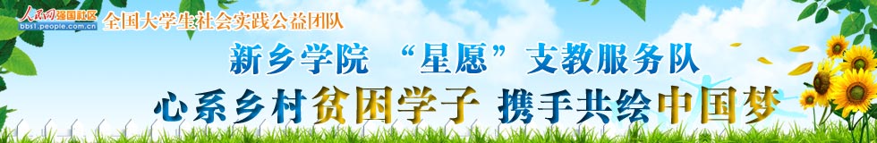 “星愿”義務(wù)支教服務(wù)隊(duì)于2009年成立,現(xiàn)有支教志愿者120余名。除多次開展暑期社會(huì)實(shí)踐支教活動(dòng)外,在校期間他們還堅(jiān)持每周二下午赴貧困小學(xué)義務(wù)支教活動(dòng)。五年來,他們參與支教的次數(shù)達(dá)100余次,9000余小時(shí)課時(shí)。他們與新鄉(xiāng)市紅旗區(qū)平原小學(xué)、封丘縣潘店鎮(zhèn)老莊小學(xué)建立了長(zhǎng)期幫扶關(guān)系,還在延津縣榆林鄉(xiāng)大榆林小學(xué)、夾堤小學(xué)建立了愛心支教服務(wù)基地。