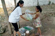志愿者宋文靜是付里莊小學(xué)手語老師,是團(tuán)隊(duì)隊(duì)員和孩子們公認(rèn)的富有童趣的一小老師。她經(jīng)常陪孩子們做游戲,陪他們看哆啦A夢(mèng)。但就是這樣一位老師,上了課堂卻像換了個(gè)人似的,非常嚴(yán)厲。志愿者王蒙苗是付里莊小學(xué)口才勵(lì)志課老師。課堂上,她認(rèn)真教學(xué),課堂下用勵(lì)志故事激勵(lì)孩子們努力學(xué)習(xí)。因?yàn)榻?jīng)常照顧生病的孩子,孩子們認(rèn)為她最有愛的一個(gè)老師。志愿者孔令陵是后勤人員之一及封丘支教教務(wù)主任。她每天都會(huì)在五點(diǎn)去最近的商店買菜,然后摘菜、洗菜,做整個(gè)團(tuán)隊(duì)和部分孩子的飯菜,保障全隊(duì)生活