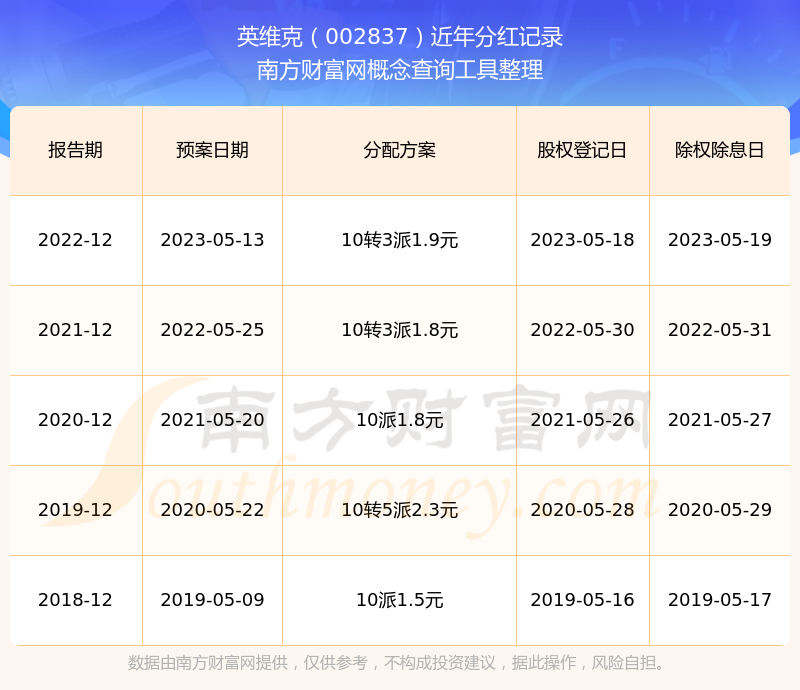 英維克最新一次公布的分紅方案為10轉(zhuǎn)3派1.9元。本次權(quán)益分派股權(quán)登記日為2023年5月18日,除權(quán)除息日為2023年5月19日,派息日為2023年5月19日。