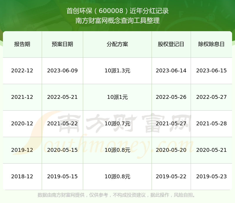 近年首創(chuàng)環(huán)保分紅情況如下表所示: