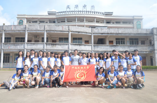 團隊所有成員在支教地點文華中學(xué)樓前合影。