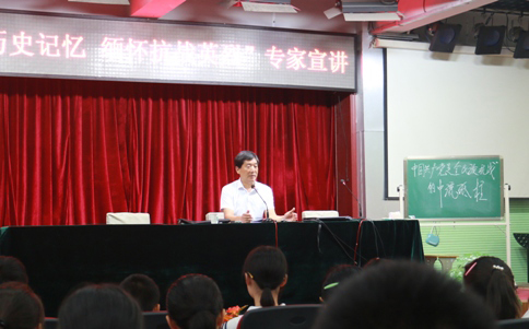 人民網(wǎng)邯鄲7月23日電(陸加杰 于紅林 李兵兵 徐于凡)7月22日-24日,由中央網(wǎng)信辦、中央黨史研究室指導(dǎo),人民網(wǎng)聯(lián)合河北、內(nèi)蒙古、遼寧、吉林、黑龍江、重慶、四川、貴州8省區(qū)市共同主辦的“尋找歷史記憶 緬懷抗戰(zhàn)英烈——紀(jì)念抗日戰(zhàn)爭(zhēng)勝利70周年系列活動(dòng)”在河北邯鄲啟動(dòng)。“黨史專家進(jìn)校園”是此次系列活動(dòng)的重要組成部分,23日下午,中央黨史研究室宣傳教育局原副局長(zhǎng)薛慶超來(lái)到邯鄲市廣泰中學(xué),以“中國(guó)共產(chǎn)黨是全民族抗戰(zhàn)的中流砥柱”為題,為該校師生講述了一堂生動(dòng)的抗戰(zhàn)歷史課。