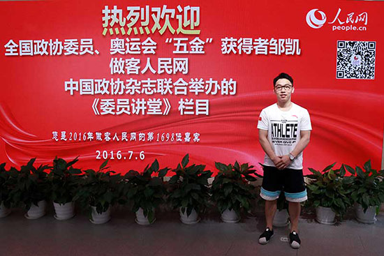 全國(guó)政協(xié)委員、奧運(yùn)會(huì)“五金”獲得者鄒凱(代睿 攝)