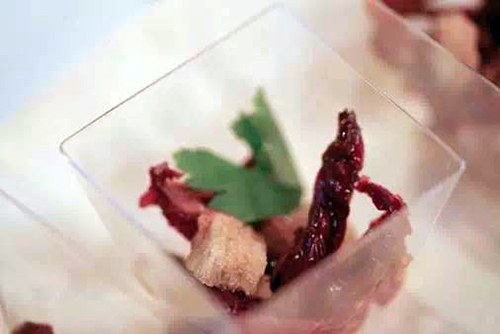 牛肉選用的是最嫩的腿肉部分,加入香料,文火慢燉,晾涼,切薄片后,上面覆蓋金槍魚醬汁。肉香與魚的鮮美巧妙的結(jié)合,清淡與濃稠交合,一軟一硬,正詮釋了美食藝術(shù)的和諧之處。在盛夏中,享受著浪漫的地中海的陣陣清爽的海風。
