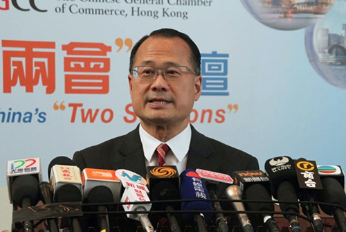 蔡冠深在香港中華總商會(huì)舉辦的“解讀全國(guó)兩會(huì)論壇”上接受采訪(fǎng)