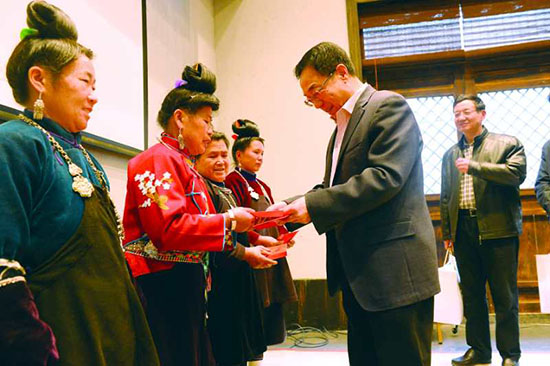 人民網(wǎng)北京1月28日電(記者周晶)在黔東南州丹寨縣龍泉鎮(zhèn)馬寨村,當(dāng)建檔貧困戶李明忠和他的妻子從全國人大社會建設(shè)委員會副主任委員、中國社會工作聯(lián)合會宮蒲光會長手里接過厚暖的羽絨服、糧油品和慰問金時,憨厚的夫妻倆有些激動,嘴里一直不停的說“謝謝謝謝……”。