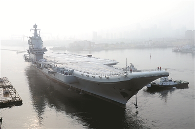 2018年5月13日,我國第二艘航母從大連造船廠碼頭啟航,赴相關(guān)海域執(zhí)行海上試驗(yàn)任務(wù)(圖片來源:新華社)