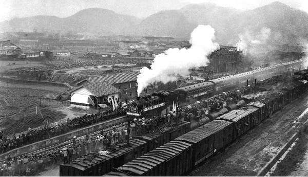 1978年,火車首次進入湘西州州府吉首,一輛冒著滾滾白煙的蒸汽火車在城區(qū)穿行,鐵路兩旁站滿了揮舞著花束的人群。新華社記者 唐克立攝