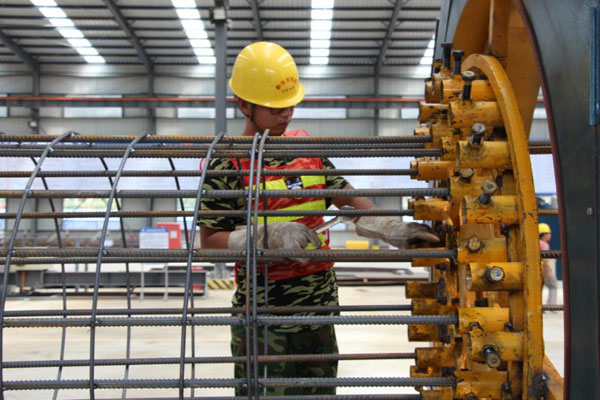 現(xiàn)在施工機械化程度非常高。圖為鋼筋籠機械加工設備,全自動焊接。 中鐵四局一公司提供