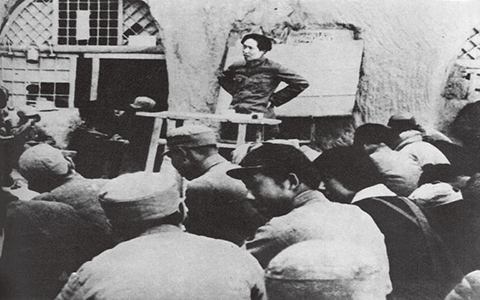 延安整風(fēng)期間我們黨強(qiáng)調(diào),反對主觀主義以整頓學(xué)風(fēng),反對宗派主義以整頓黨風(fēng),反對黨八股以整頓文風(fēng)。圖為整風(fēng)運(yùn)動時,我軍某部連隊指導(dǎo)員在給戰(zhàn)士們講課。