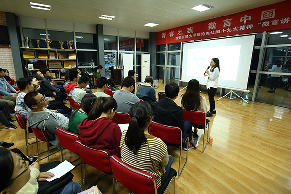 錄制前的電話初采時,聽聞李婧竟是比記者僅大一歲的博士生,我訝異不止。清脆活潑的聲音,大方清晰的談吐,正是一場場宣講留在她身上的印記,也帶著遠遠超出她這個年紀的穩(wěn)重和堅定。從2017年作為第一批宣講人加入西安交通大學(xué)學(xué)生微宣講團開始,從山村小學(xué)到重點高校,從工廠車間到領(lǐng)軍企業(yè),從邊防軍營到繁華都市,李婧的足跡遍布22個。ㄊ、自治區(qū)),參與宣講工作。