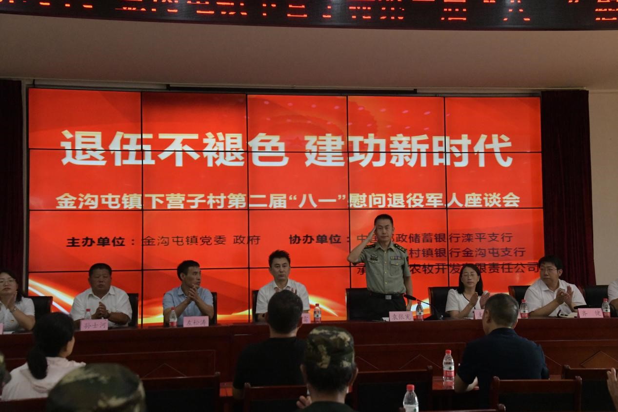 8月1日下午,灤平縣金溝屯鎮(zhèn)下?tīng)I(yíng)子村聯(lián)合愛(ài)心企業(yè)中國(guó)郵政儲(chǔ)蓄銀行灤平支行、灤平盛陽(yáng)村鎮(zhèn)銀行金溝屯支行和承德久財(cái)農(nóng)牧開(kāi)發(fā)有限責(zé)任公司共同舉辦了“退伍不褪色 建功新時(shí)代”第二屆“八一”慰問(wèn)退役軍人座談會(huì)。活動(dòng)現(xiàn)場(chǎng),大家歡聚一堂,共同慶祝中國(guó)人民解放軍建軍95周年,共敘魚(yú)水深情,并為優(yōu)秀退役軍人頒發(fā)榮譽(yù)證書(shū)。 王海琦 郎朗 攝