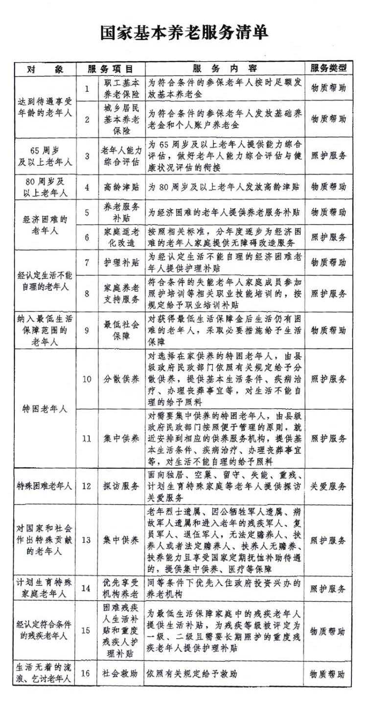 近日,中共中央辦公廳、國務院辦公廳印發(fā)《關(guān)于推進基本養(yǎng)老服務體系建設(shè)的意見》(以下簡稱《意見》),并正式發(fā)布了《國家基本養(yǎng)老服務清單》!兑庖姟访鞔_了基本養(yǎng)老服務涵蓋物質(zhì)幫助、照護服務、關(guān)愛服務等主要內(nèi)容,回答了基本養(yǎng)老服務“服務誰”“服務什么”“如何服務”等關(guān)鍵問題,是我國養(yǎng)老服務發(fā)展史上的一個重要里程碑。