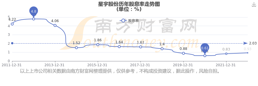 近年星宇股份年度股息率走勢(shì)如下圖: