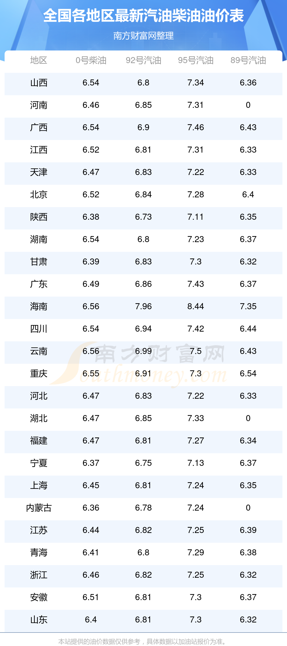 本站提供的油價數據僅供參考,具體數據以加油站報價為準。