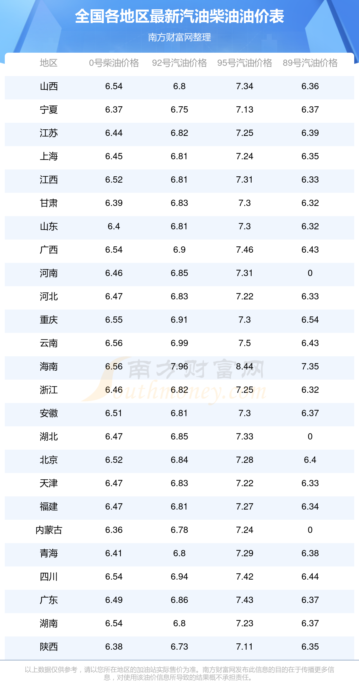 油價(jià)數(shù)據(jù)僅供參考,請以您所在地區(qū)的各加油站報(bào)價(jià)為準(zhǔn)。