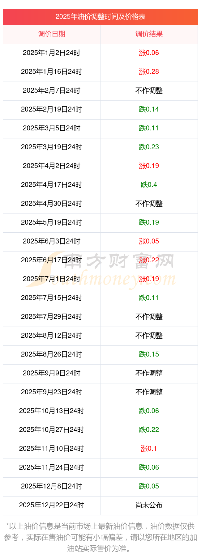 2025年12月14日油價調(diào)整時間及價格一覽表