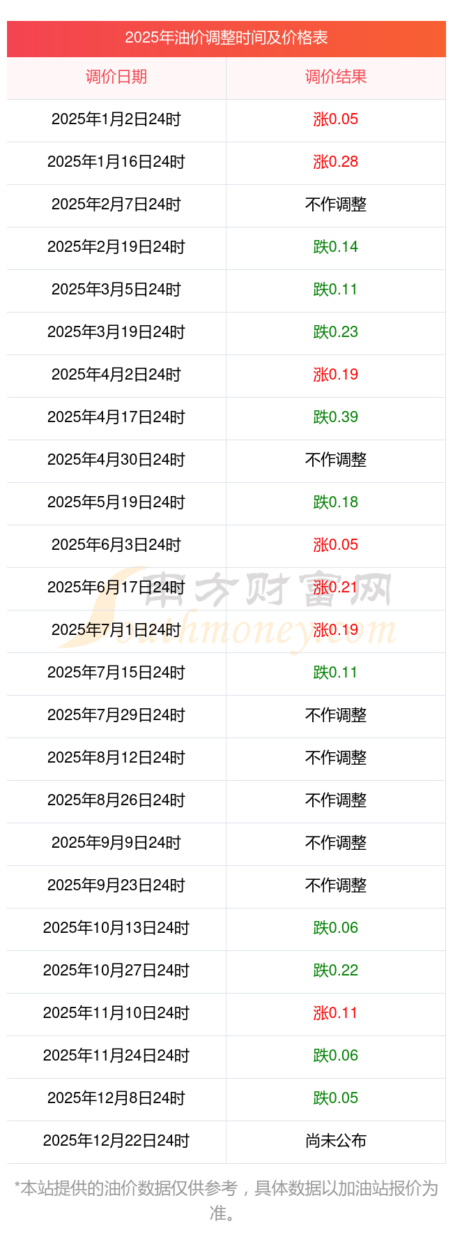 2025年12月14日全國油價調(diào)整時間及價格一覽表